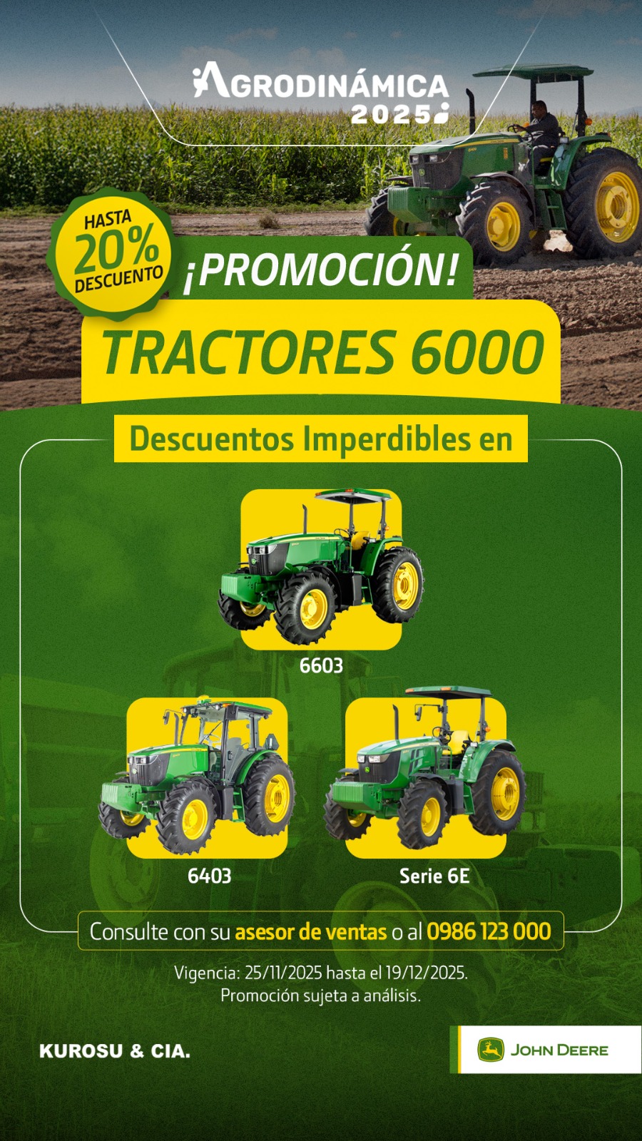 Ahora Nueva Garantía de 12 meses en los Repuestos Originales John Deere instalados por Kurosu & Cía.; y 6 meses en los Repuestos instalados por el cliente