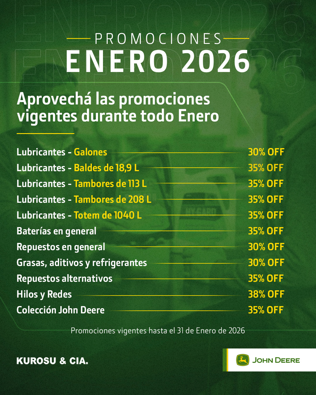 Ahora Nueva Garantía de 12 meses en los Repuestos Originales John Deere instalados por Kurosu & Cía.; y 6 meses en los Repuestos instalados por el cliente